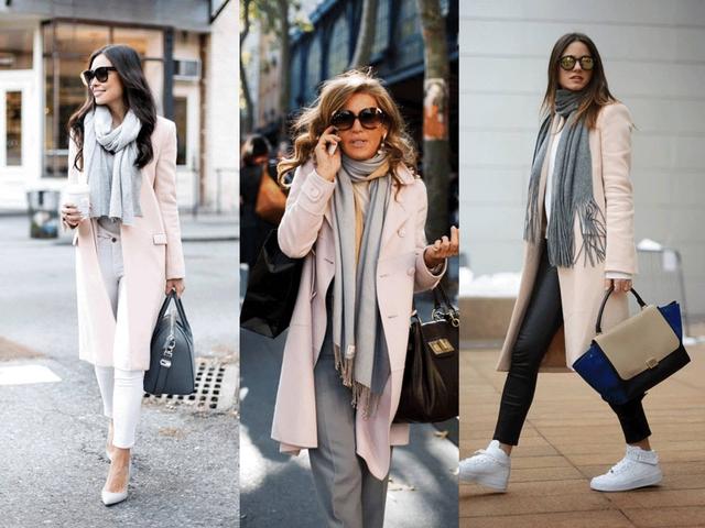 你可能会觉得灰围巾那么普通,也没有什么刚才说的「点缀」和「装饰」效果。为什么要买灰围巾呢? 如果百搭的话,为什么不是黑色和白色更百搭呢? 多萌慢慢来和你说。 大家在冬天经常会穿一身黑吧。一身黑会给人闷闷的感觉,而灰色围巾能使整体造型不那么严肃,有「透气」的感觉。如果这时候用白色围巾,对比度强烈,就会有些刺眼。当然不是说白围巾搭配黑衣服就有错,但是灰色会让整体看起来更温和一些。 深灰色也是秋冬大家常穿的颜色,深灰色的衣服和浅灰色的围巾搭在一起会,使得造型变得丰富又精致,而且看起来很干净。 一身烟灰可能并不是我们日常会穿的颜色搭配,但是一身烟灰色的高级感非常强,相同颜色但是不同质感的搭配非常有意思,会有与众不同的感觉。大家可以尝试一下,说不定会有惊喜哦。 粉色和灰色也是经典搭配,非常优雅,,怕被人说装嫩,又想穿粉色大衣的话就搭配一条灰色围巾吧。 驼色大衣也是基础的颜色,是很柔和的搭配,会给人很温柔的感觉。 如果还是觉得灰色围巾很寡淡,也可以选择稍微有一些变化的灰调围巾,作用和灰色围巾类似,又会增加些许跳跃。 总而言之,言而总之,,不用动脑子,所以如果不知道买什么围巾,挑花了眼,就买一条灰色的,错不了。它永远都是你衣橱里不管穿什么,抓起来就能走而且不容易出错的那一条。