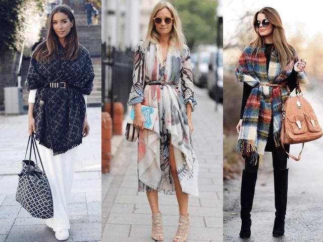 普通的休闲基础款衣服,配上合适的丝巾,一下就能变得满满女人味了,而且平衡得很好还不会过头。 下面我们来做一个丝巾和一般羊毛围巾的对比: 驼色大衣给人简洁自然的感觉。我们会发现羊毛围巾给人的感觉是更休闲的,如果搭配一双小白鞋会增加一丝漫不经心的随意。而小丝巾能提高整体造型的精致度和女人味,合适搭配的鞋子有 Pumps、尖头平底鞋。 灰色长袖针织衫或者卫衣也是常见的搭配,分别搭配羊毛围巾和丝巾,效果也是不一样的。 羊毛围巾和灰色针织衫是相同质地,搭在一起是常规搭配,会给人舒服自然的印象。丝巾跟灰色上衣的质地不同,两者的反差能带来一丝优雅感,如果你想让一件基础款变得精致可以尝试搭配丝巾。 总结一下,花丝巾是要挣脱冬天厚重粗笨的搭配,让自己变精致轻盈性感的性价比最高的单品。 ▍单品推荐 毯巾 毯巾就是正方形、尺寸比较大的围巾,常常被用来当作披肩。 毯巾搭配也是很有讲究的,要是搭得好还是可以很美很仙的。 不过上面是高阶的穿搭,新手或日常穿搭毯巾我们还是以基础款打底为主。 毯巾披在肩上,加一条系腰带固定在上半身是很常见的毯巾穿搭,这种戴法能尽显优雅的女性气质。前年因为时装周的缘故热了起来,但是因为很少人能穿好,所以总是被人诟病难看。 如果你要这样扎腰带穿的话,多萌这里有几个小建议。