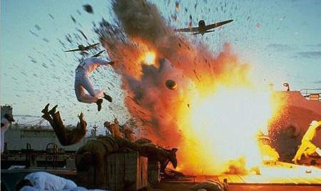 电影镜头重现了珍珠港事件中美军士兵被炸飞的场景