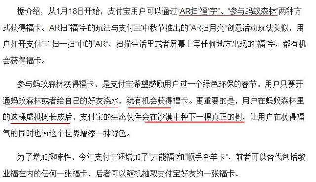 据南方网报道介绍,本次支付宝集福卡红包活动,用户有两种方式获得福卡,分别是AR扫“福”字、参与蚂蚁森林。而且为了增加大家的情调,支付宝还增加了“万能福、顺手牵羊”2种卡。搞的如此神秘?倒是增加了老衲几分好奇心呀。