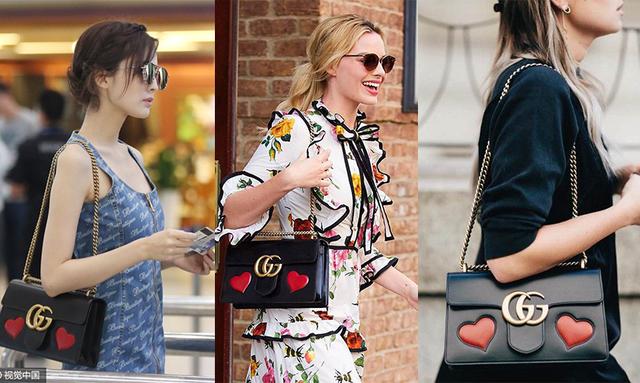 Gucci “GG Marmont” Gucci家族从2016年占领了街拍半壁江山,几乎达人人手一只,不过论受欢迎程度,双G绝对是头号。从新款绗缝到爱心双G,将70年代的经典标识进行全新演绎,既复古又时髦,不怪国内外的明星达人都爱它! GG Marmont系列的手袋有很多,但在少女心爆棚的2016年,爱心款刚出炉就受到了各路明星的宠爱。黄铜金属链带和双G标识恰到好处的打造了可爱复古风。 值得入手: