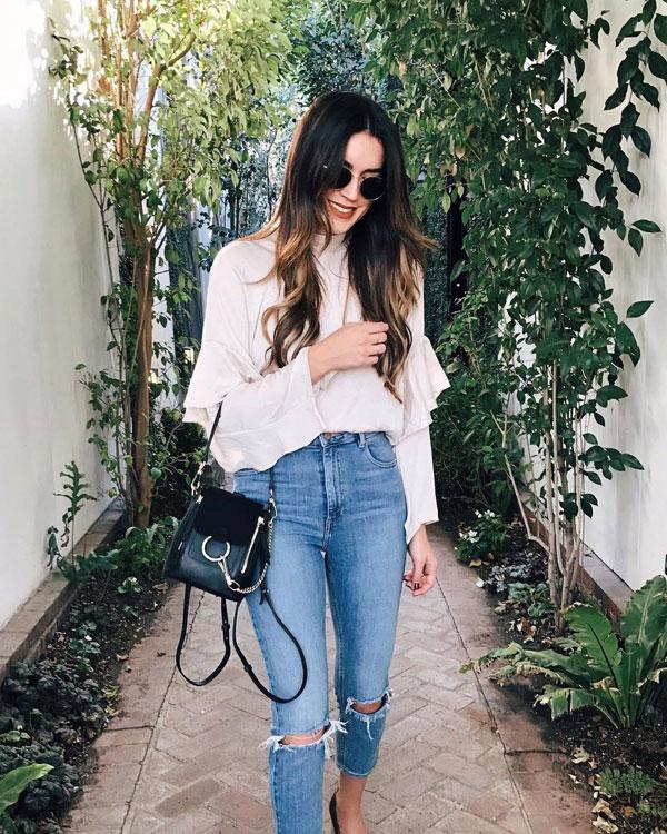 相比偏通勤风的单肩包,Faye的这款双肩包更显青春活力一些。一样是熟悉的圆环,而双肩的包型却要比之前的经典款更时髦实用一些。双肩Faye的容量更大,可斜跨、手提和肩背的形式也更适合时尚达人们拗造型。