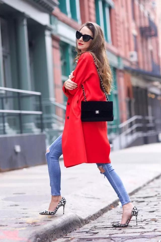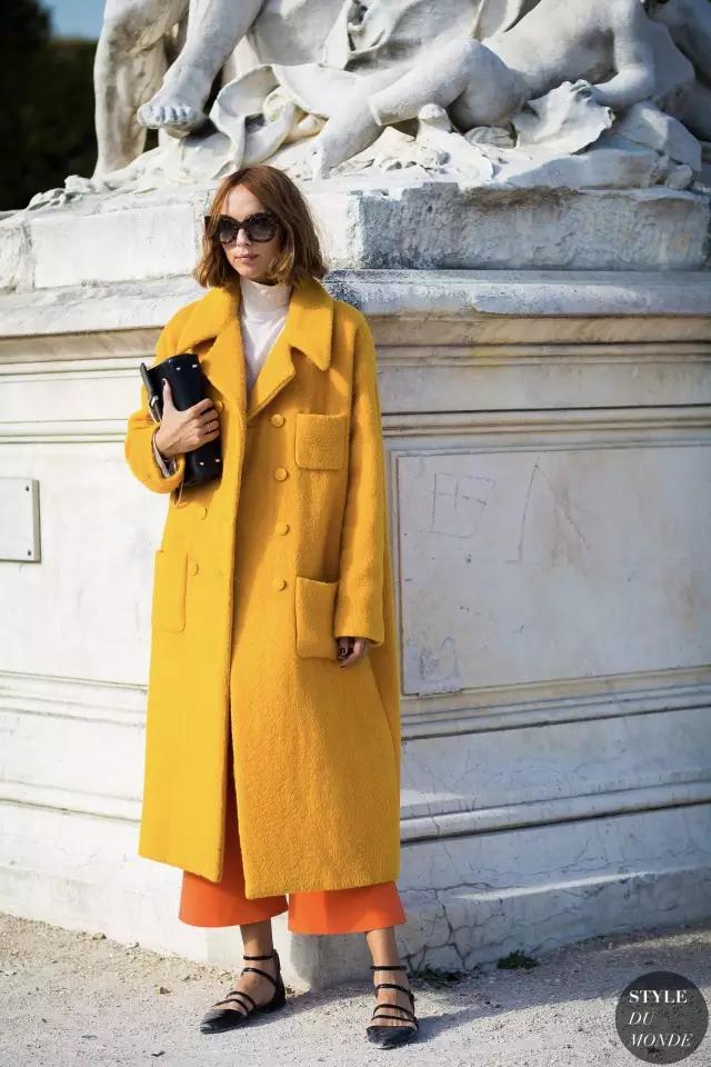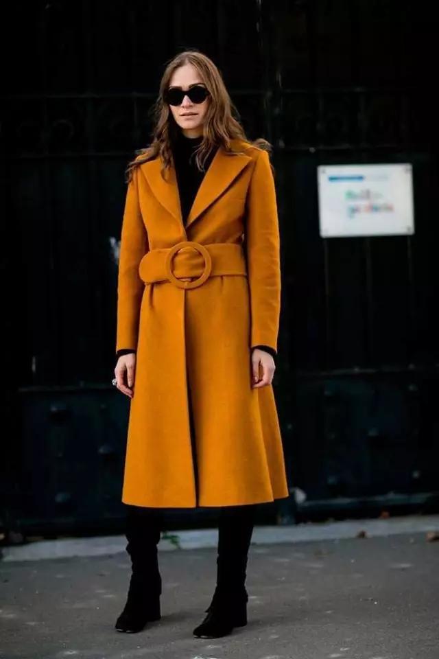 在诸多种大衣款式中,又属黑白灰驼最是百搭实穿。但讲真,千篇一律的基本款穿多了未免有些寡淡乏味,更何况,春节将至,你更需要多添几件亮色大衣,来为新的一年增添更多的好运与靓丽心情。 红色 首先要推荐的,当然是最耀眼又喜庆开运的红色大衣,绝对是迎接新春的必备款。而红色大衣如何穿搭才能避免俗气或者浮夸呢?第一点你要选对款式版型。因为红色本身比较张扬艳丽,你可以选择这种风格比较帅气的立领双排扣大衣来进行中和,魅力更加倍。 而oversized的浴袍大衣则最显高级感,可以穿出高贵优雅的气质范。 这种X型的大衣还可以直接当做裙装进行搭配,女神气场强大,明艳动人。 如果你觉得正红色太过高调,可以选择这种马海毛材质的大衣,这种柔软的面料可以让正红色不那么张扬,更有温和亲切感。 红色大衣想要穿出高级质感,内搭一定要从简。红色大衣与黑色内搭是绝配,简约够大气。 觉得一身黑的内搭太单调,可以利用配饰来增添更多时髦细节。红色格子围巾和红色包包与大衣颜色相呼应,增加了造型的整体感,时髦指数更加倍。 白色也是不错的内搭选择,高贵优雅,能赋予红色更多知性气质。 还在读书的学生党or喜欢休闲风的女生,如果觉得红色太成熟hold不住,不妨用复古嬉皮的牛仔裤来与之组cp,照样能将红色穿出青春活力的街头style。 也可以混搭小白鞋,减龄舒适又有型又品。 红色大衣也可以玩转同色系搭配,最推荐内搭淡粉色裙装,温柔美好气质佳。 如果还是觉得驾驭不了正红色,那么相对比较内敛却更显优雅女人味的酒红色大衣会是你的最佳选择。简单搭配黑色最能凸显出酒红独有的韵味,真的美醉了! 搭配过膝靴,女人味十足。 搭配裤装也同样养眼好看,显贵有腔调。 黄色 秋冬季节最适合穿着暖色系单品,而一抹明亮饱满的黄色,既能为你带来暖意,更能助你在人群之中轻松脱颖而出。 黑色永远是各种高饱和度色系的最佳内搭选择,既能够充分彰显出亮色之美,又足够简约耐看。 蓝色作为秋冬的百搭色与黄色同样般配,还能增添更多青春活力。 当然有些人会觉得亚洲人本身就是黄皮,选择大面积的黄色大衣更容易显得肤色暗沉。其实你只要搭配一件白色内搭(最好是高领的,与面部更接近),就能够轻松穿出好气色。 柠檬黄大衣,亮眼之余还有几分清新之感。 姜黄色素来是秋冬的专属色,能够完美演绎出秋冬独有的韵味风情。 浅浅的鹅黄色同样能给人温暖的感觉,恬静温婉亦是很不错的选择。 橘色 今年秋冬美妆界兴起了一股“脏橘色”的风潮,而橘色被运用在大衣上也非常吸睛出众,还能给人一种生机勃勃的感觉,明媚又富有朝气。 亮橘色大衣,搭配黑色小脚裤+小白鞋且帅且美。 搭配藏青色阔腿裤+高跟鞋尽显走路带风的女王气场。 外套叠穿是秋冬最流行的搭配套路,用橘色大衣内搭牛仔外套,时髦指数和温暖指数皆翻倍。 皮肤白皙的女生在橘色大衣的映衬下更加肤白貌美。 而肤色偏黄偏黑的女生驾驭橘色大衣也毫无压力,甚至还能穿出更特别的时髦型范。 这种稍微深沉一点的橘色也很好看,更能彰显出秋冬的复古风情,美不胜收。 这种南瓜色也是今年秋冬的大热色,文艺复古韵味十足。 粉色 软糯的粉色绝对是女生们的挚爱,并且这两年粉色也一直跻身在流行色的行列之中,因此粉色大衣其实是非常值得投资的。 粉色有很多种色调,但是始终最推荐的是这种淡粉色,好驾驭的同时也比较耐看显质感。 淡粉色大衣与白色内搭是天作之合,粉嫩貌美又提气色。 如果觉得太过甜美,不妨适当加入中性的黑色单品进行混搭。 尤其是今冬流行的脏粉色,在黑色的加持下,粉色也能演绎出不羁帅气的魅力。 灰色+粉色也是非常推荐的配色组合,简约大气的灰色中和了粉色惯有的甜腻,可以你的粉色大衣look更加耐看显贵。 粉色大衣+牛仔裤,时髦又够chic,非常推荐。 绿色 从2016年秋冬大热色系之一到草木绿问鼎2017年度流行色,毫无疑问绿色如今已然成为时尚圈最炙手可热的颜色。如果你皮肤白皙,那么今年的年度流行色草绿色大衣再适合你不过,又仙又美充满蓬勃生机。 这种更深一点的翠绿色大衣会对大多数人更友好一些,最简单又经典不出错的内搭还是前面说过的黑色。 百搭又复古的牛仔裤也和翠绿色大衣很般配,搭配一条丝巾点缀在颈间更是仙气十足。 清新别致的薄荷绿也会是少女们的心头好,并且比你想象中的更实穿好搭配。 孔雀绿大衣也是特别推荐的款式,虽然小众却着实显白显气质,复古文艺又浪漫。 蓝色 前几天和大家介绍了时下正当红的雾霾蓝,许多粉丝都在后台留言表示被美哭了。而自己最喜欢的雾霾蓝单品,则非雾霾蓝大衣莫属,它既像黑白灰色基础款大衣一般百搭,却又不像它们这般寡淡,兼具美貌与实穿度。 而除了雾霾蓝,其实还有很多不同饱和度的蓝色大衣都同样百搭又有质感,值得你拥有。像明媚的天蓝色,搭配裤装率性大方又非常养眼好看。 耀眼却又不会太过浮夸张扬的宝蓝色,让你轻松美成新年里的一道街景。 深一点的湖蓝色也极富美感,内敛而高贵。 梦幻又清新的baby蓝和静谧蓝大衣,更是助你轻松美出新高度。