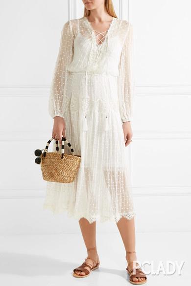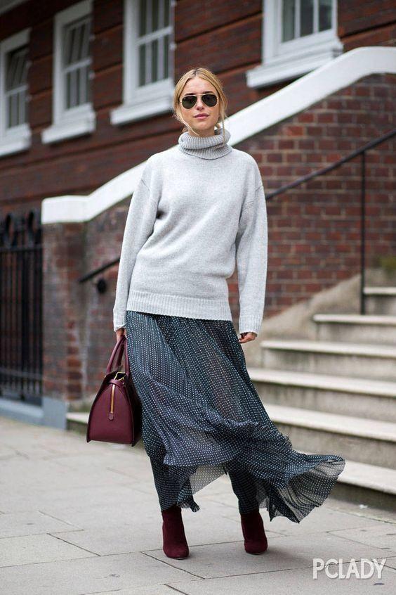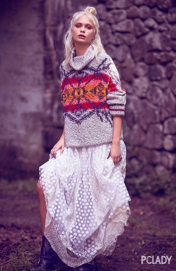 不知同样对时尚有敏锐洞察力的你有没有发现,混搭渐渐占据了时尚圈的主导地位。不仅仅没有臃肿感,反而利落、简洁的层次感会让你的造型大大加分。 所以说,我们由此可以前推到之前的各大时装周秀场,原来,很多大品牌就已经将这种搭配在T台上有所呈现。 Burberry 2017春夏 春夏款的服装必然是要轻盈感十足~ Chloe 2016秋冬 秋冬季节的服装还是要在保暖的基础之上更美一些,所以设计师们在设计上有所突破~ Etro Jil Sander 这些大品牌设计师们也都在这种搭配上大大下足功夫,时髦指数翻倍。 Free People秋冬造型搭配大片 品牌拍摄的大片也是造型感十足,时尚且唯美~ 那么,有些妹子就会问了,怎么才能把一件薄裙既能穿出少女的轻盈质感,还能时髦保暖两不误呢?这也正是这篇文章的用意所在。编辑特意给大家整理出几种美出新高度的穿衣范本,过新年的时候大家不妨照着穿起来呢~ Oversize毛衣不能少 首先,Oversize毛衣的必备之处就不用编辑多说了,不管是造型感还是保暖指数都名列前茅。所以,今天就用这件毛衣来打造美美哒你~ 搭配蕾丝裙 蕾丝裙是很多少女的最爱,因为穿上身的效果实在是太招人喜欢了。不管是清纯少女,还是性感女郎,有了这件蕾丝裙的搭配,造型都会大大加分。 而且,这种搭配还真真儿是不挑鞋子的。不管是休闲的平底鞋、还是时髦的及踝靴,怎么穿都好看。所以,上班、逛街都适用哦~ 推荐单品:
