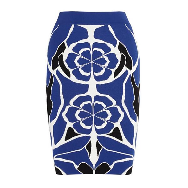 RolandMouret 2015 春夏系列侧重点面料肌理的创作,运用了大量拼缝材质与对比纹理。这款黑白色绉纱中长连衣裙选用手感舒适的圈圈呢,柔和的流苏与个性十足的金色拉链细节令这款单品极富魅力。背面的弹力拼接料和深开衩让你行动自如。 AlexanderMcQueen 花卉提花铅笔半身裙 参考价格:4,143CNY