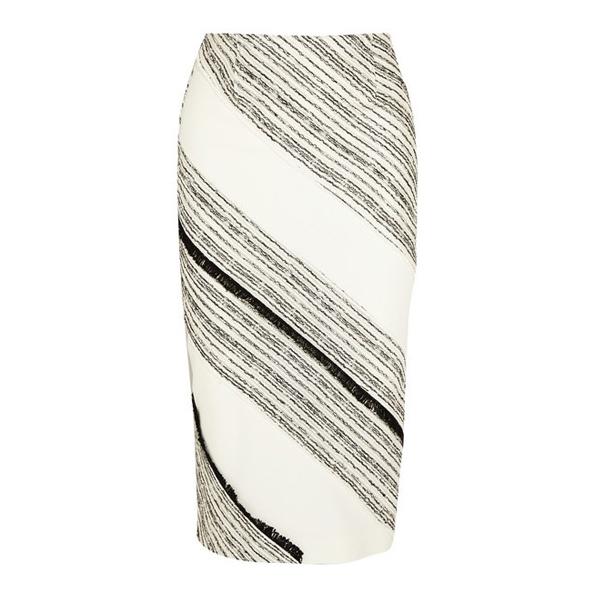 OpeningCeremony 这款 “Rory” 铅笔半身裙为传统的职业款式注入了一丝现代新意。它采用带衬垫氯丁橡胶制成,腰部饰有罩层,并附有双色腰带。不妨将上衣束入腰身,搭配凉鞋,打造简约个性的办公室造型。 RolandMouret 圈圈呢拼接绉纱中长半身裙 参考价格:4,143CNY