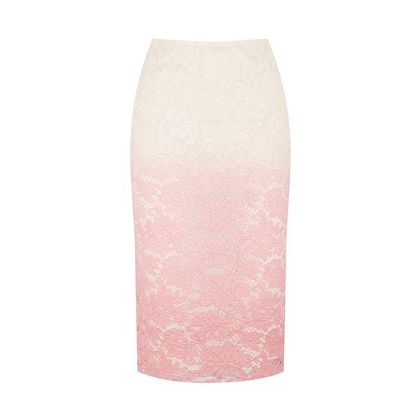 Barbara Casasola 作为建筑大师 Oscar Niemeyer 的崇拜者,深受其曲线形、轮廓主导的建筑作品影响,从这款细绉布金属丝铅笔半身裙就可见一斑。它出自品牌 2015 春夏系列秀场,带有雕塑般结构质感。不妨使用松紧腰身将裙子提至高腰,感受褶裥随身形张开的美好修身体验。 Burberry Prorsum 浸染蕾丝半身裙 参考价格:4,840CNY