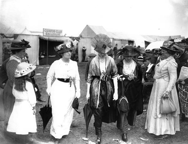 1913年,女性日常裙装类别中出现了铅笔裙 1914年,在英国皇家Ascot赛马会上,新旧两种着装潮流相遇了