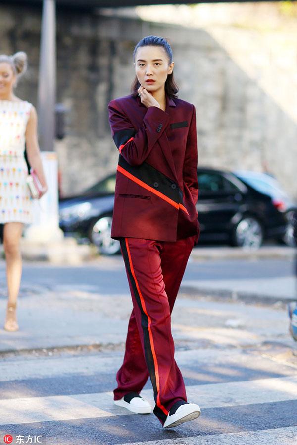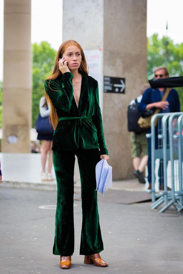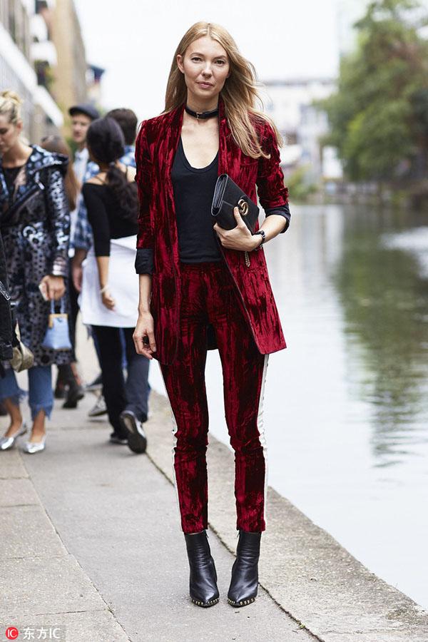 宋佳 撩妹无数的吸烟装怎么穿出女人味? 想要将吸烟装穿的高雅迷人,又想打破套装一贯以来的古板和拘谨?不想画风突变成高高在上的“总裁范儿”,更不要晋升成为“奶奶级”的老古董?不用担心,看完下面Vogue为你准备的这些穿搭小窍门,保证让你把套装穿出女人味又不失活力的街头感! 上半身搭配 -- 真空上阵 西装一向是禁欲系的专属,但如果不穿内衣、真空上阵的穿法却能使性感与禁欲完美碰撞,并产生一种奇特的时尚效果。不仅如此,将西装全部扣好要比敞开穿更能展现身材,突出腰部线条的同时也具有男装的干练。 在面料的选择上,2016最时髦的非丝绒莫属了,丝绒的低调华丽能完美地展现你的时尚品味。今年秋冬为自己投资一套丝绒吸烟装就能轻轻松松时髦过别人N条街。