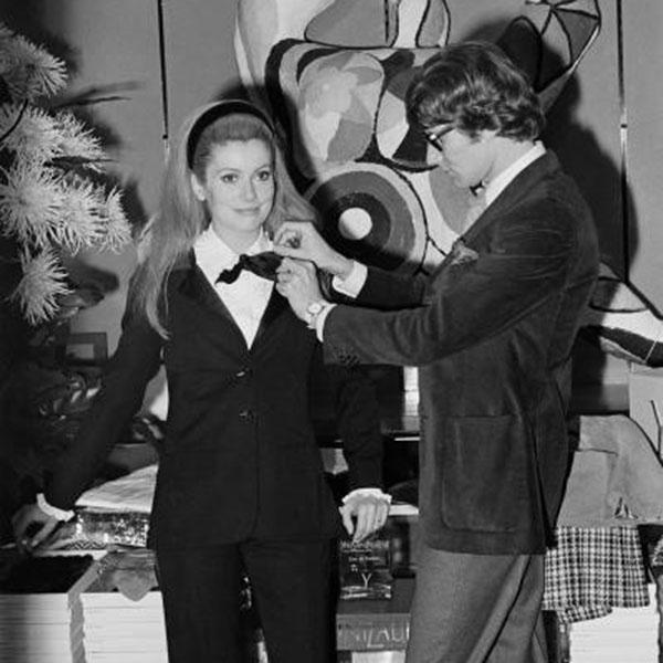 经久不衰的吸烟装(Le Smoking)究竟是什么? 谈到吸烟装,就一定会聊到的两个人物:演员Marlene Dietrich(马琳·黛德丽)和设计师YvesSaintLaurent(伊夫·圣洛朗)。好莱坞影后MarleneDietrich在电影《摩洛哥》中的一身男式晚礼西装打扮标定了一个电影时代,也给时尚标定了一个新起点,也真正成就了时装性别倒置游戏规则。 Marlene Dietrich在电影《摩洛哥》中的造型,彻底颠覆了当时的传统审美,分分钟帅出新高度 但是电影和生活终究是有距离的,直到1966年,法国天才设计师YvesSaintLaurent取缔了这个介于电影与现实之间的屏障,他将男装元素运用到女性服装里,白衬衫、领结、黑色礼服套装、毛呢礼帽,设计出时尚界第一套无尾版的燕尾服(女版西服),这种带有独特男性风格的服装被当时的时尚界称为“吸烟装 (Le Smoking)”。 1966年设计师Yves SaintLaurent(伊夫·圣洛朗)与他的灵感缪斯、法国女星凯瑟琳·德纳芙(Catherine Deneuve) 摄影大师赫尔穆特·牛顿(HelmutNewton)在1975年为法国版《Vogue》拍摄的吸烟装时尚大片 吸烟装有多美?看看这些穿它的女人们就知道 吸烟装的出现,对当时的高级女装而言是个突如其来的神话。它让女人的礼服不再仅仅局限于裙装,穿上西装裤之后,女人可以像男人一样迈着大步子走路,可以像男人一样用稍息的姿势一手叉腰一手夹烟,女人从此可以像男人一样行动,而不必再遵循老朽的妇人之道,处处迎合男人的喜好。从此西装不仅仅是男人必备的服装,更是女人无法丢弃的风格。