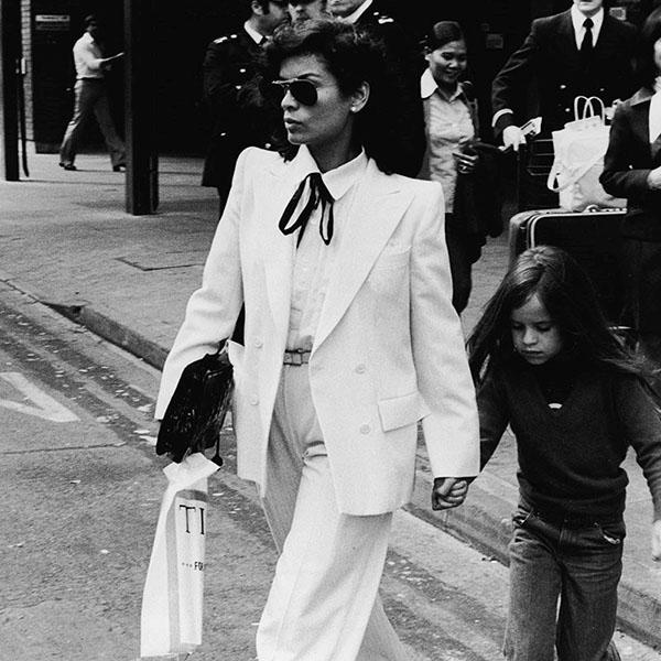 -- 安卡·贾格尔(Bianca Jagger) 1971年,纽约夜店女王比安卡·贾格尔(Bianca Jagger)真空上阵,穿着YSL白色吸烟装外套参加她与滚石乐队主唱米克·贾格尔(Mick Jagger)的婚礼。 比安卡·贾格尔(Bianca Jagger)穿着各式标志性白色吸烟装,这种同时赋予了女性阳刚和阴柔气质的穿着比起暴露性感的女裙更能让人意乱情迷。穿着吸烟装的Bianca美过女人又帅过男人,彻底颠覆当时对女性的传统审美。 -- 安吉丽娜-朱莉(Angelina Jolie) 穿起吸烟装来毫不逊色老公皮特的安吉丽娜-朱莉(Angelina Jolie) -- 王菲