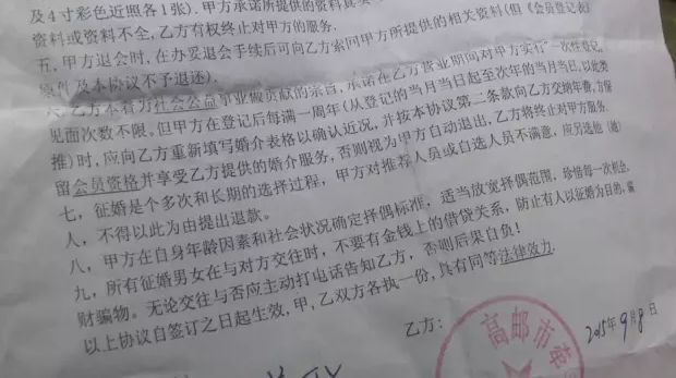 男大当婚,女大当嫁。34岁的褚治平跟随家人从外地来到高邮郭集打工生活,因为不善交际,朋友圈子太小,他一直没能谈到对象。因此,渴望爱情的褚治平找到婚介中心,用贴小广告的方式征婚,没想到,这方法还真管用!找到了位可心的女朋友。只不过,眼看到了谈婚论嫁的地步,两人却出了状况!