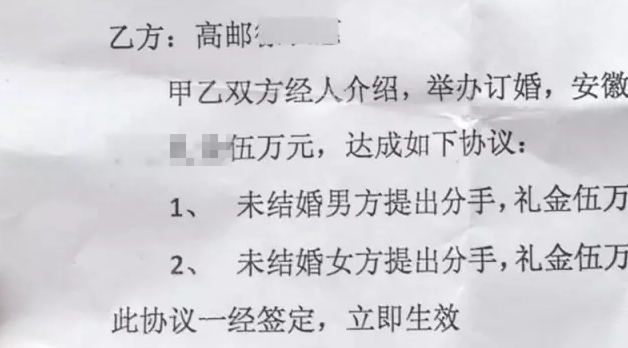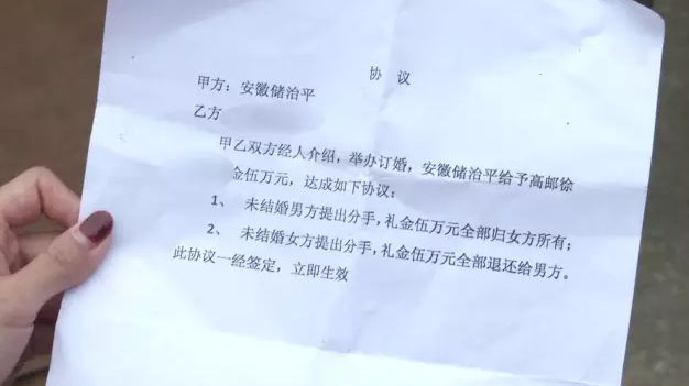 今年年初,褚冶平一家再次找上门,跟对方商谈婚事,要求光明正大的办喜酒,让大家都知道这门婚事。面对褚家人的坚持,王洁的妈妈当时就表态,领证可以但办酒不行,如果男方坚持办酒,这个婚就不结了,他们愿意退还5万块钱的定金。不过,对方很快就变卦了,先说给三万,又说只能退还5千,后来一分钱都不肯给了。