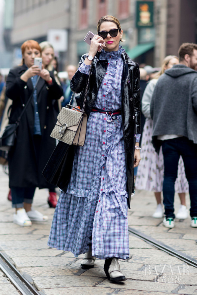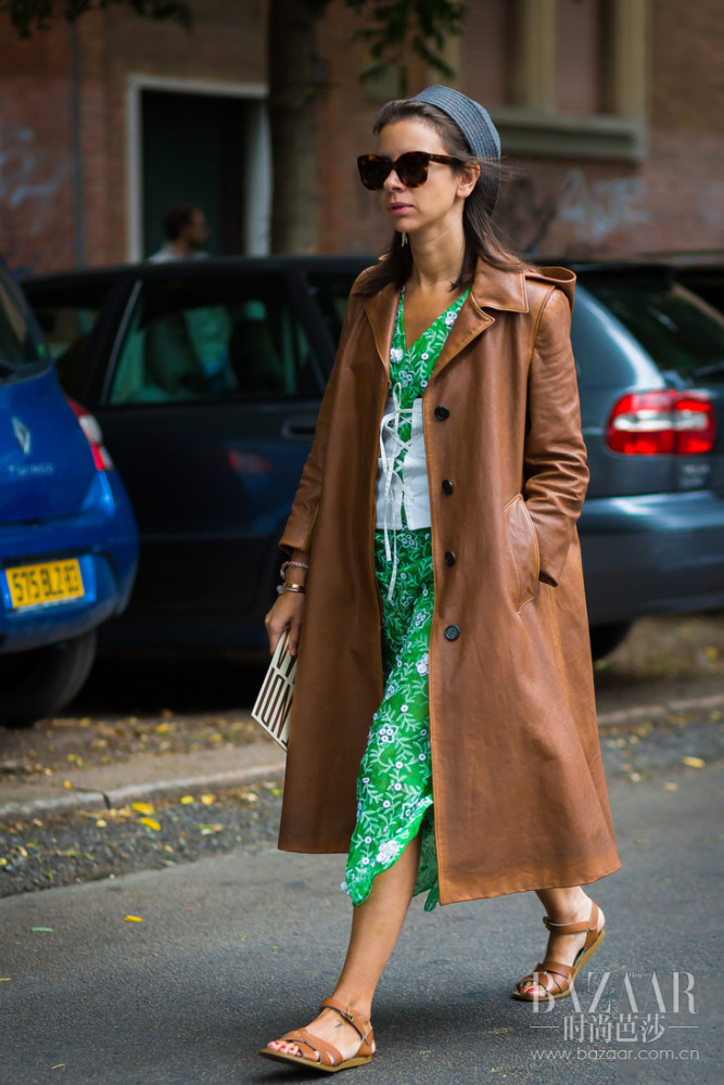 素色腰封+印花长裙 春暖花开,印花长裙少不了,想要打造别致造型不妨在连衣裙外系上素色腰封,中和印花令人眼花缭乱的局面,也让你的造型更加典雅精致。