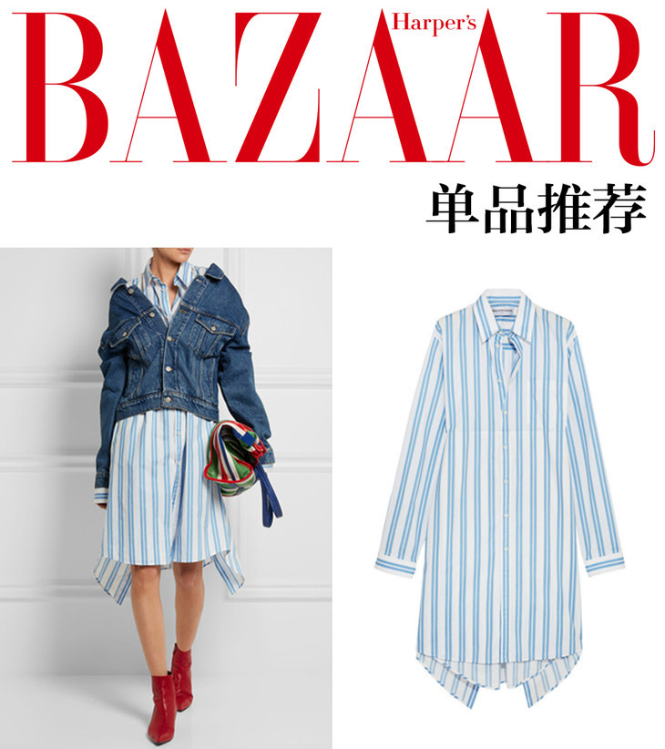 网布拼接牛仔腰封 Tibi 麒麟臂想要穿衣显瘦 靠的就是这条衬衫裙