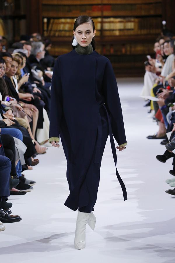 穿一条极简风格的针织裙就可以搭配复杂一些、设计感强一些的配饰,一繁一简恰到好处。
