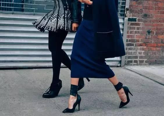 喜欢黑色针织裙的你,也可以尝试藏蓝色,搭配方法基本一致。