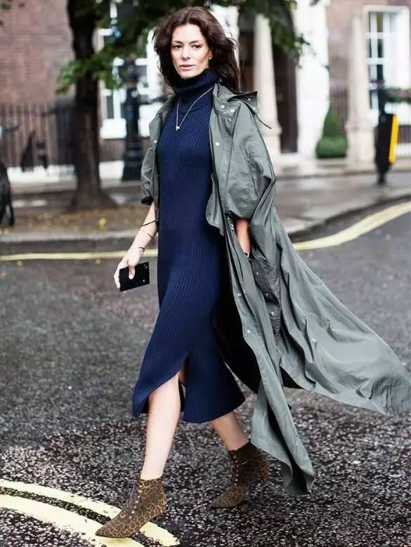 春天也是穿大衣的季节,纯色的针织裙绝对可以搭配你的每一款大衣。