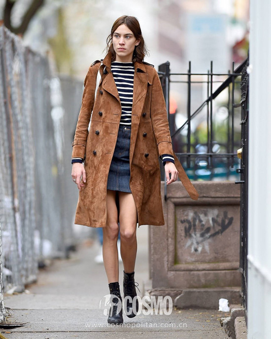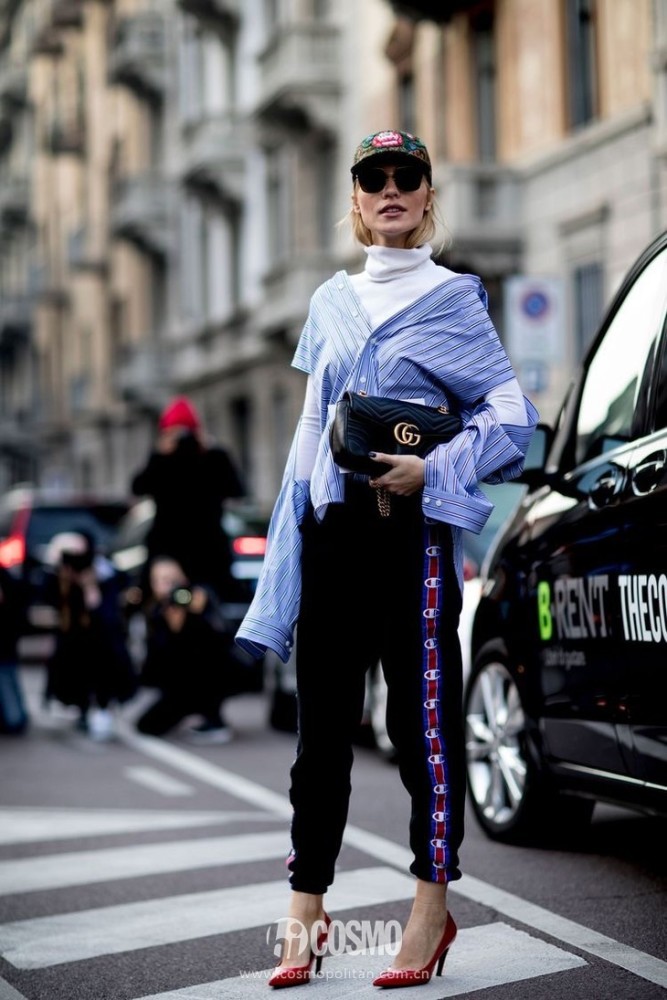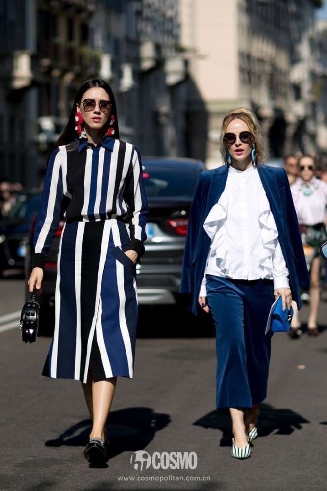 全身条纹的穿搭很多人不敢尝试,其实搭配好会更帅气有腔调。小tips:全身上下的条纹应在宽窄或颜色上有所区分,才能凸显出时髦层次感来。