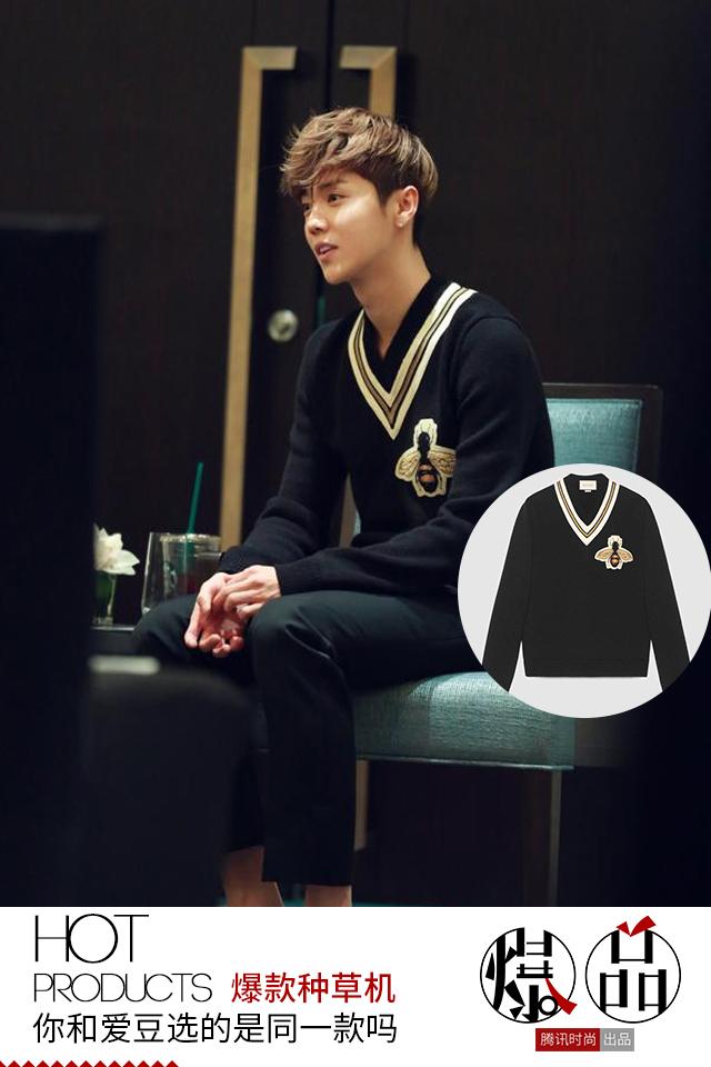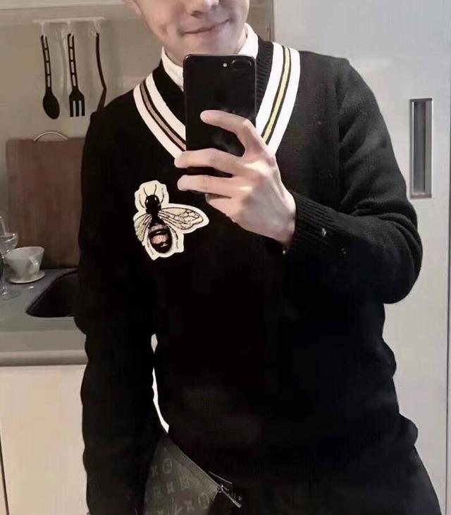 Gucci 有多火? 它的亚洲腕表代言人是李宇春,从明星到网红几乎全部穿过Gucci的爆款,如果你还不认识Gucci毛毛拖鞋或者酒神包,那你就真OUT了! 今天小编要讲的这款蜜蜂毛衣更是引发了史上最震撼的撞衫!除了鹿晗、李宇春的喜爱,它还获得了郭德纲郭大爷的加持!可见它有多“爆”了! 【爆款秀】 品牌:Gucci 产地:意大利 名称:蜜蜂贴花羊毛毛衣 材质:100%羊毛 款式:黑色羊毛,配以丝带滚边