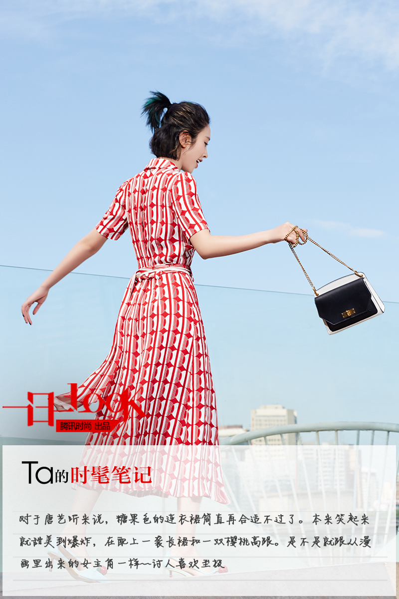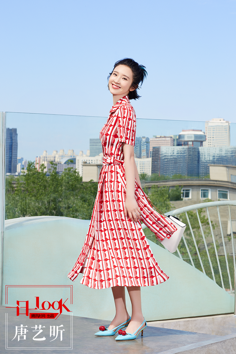 造型解析:包包:BALLY;鞋:GUCCI;连衣裙:MIU MIU 从“祺贵人”一角被大众熟知后,她或沉静如水或机灵如星的气质,唐艺昕这个爱笑的女孩被大家熟知,从此开启演艺生涯,实力证明爱笑的女生运气不会太差,就像她的笑容一样,她是浑身充满正能量的姑娘,浑身充满了年轻的率真和个性!这段时间跑男的武媚娘妆达人,跑男灵魂化妆师恺恺上线,将唐艺昕化的丑出天际!不过率真又可爱的唐艺昕还是顺势圈粉无数!不过不得不佩服这位小仙女,除了和花少张若昀甜齁死人的恋情外,这个女孩纸的笑容真的有毒!如沐春风的感觉! 策划/造型:卢晶 山川;摄影:欧文;妆发:王奕为;撰文:Qri;服装助理:Qri 对于凉快的夏天来讲,没有什么比一条美美的连衣裙来的更好的了。特别是像唐艺昕这样可爱甜美的女孩子,一条连衣裙更是能帮助它们甜过一整个夏天。并且在搭配上也更加的随性。比方说随便一个链条包手包都能够完美的融入到整个造型中。在这里个子高一点的女生也可以用运动鞋搭配上连衣裙,更突显整个人的完美比例,那相对小巧可爱的女生来讲,搭配一个高更鞋更能让你亮点满分哦~ Tips1: 猫跟鞋?高跟鞋?反正有点跟总不会错! 高跟鞋对于女孩子来说,肯定是一个必不可少的凹造型利器,那么在这里呢,唐艺昕选择的是一款比较低跟的尖头鞋。模样也类似于今年的猫跟鞋,就那么一小点跟~穿上去相对于高跟鞋来说更加的方便好穿,并且尖头鞋有利于拉长腿部的整体线条,会有显瘦的作用哦~ Tips2: 想要质感?来一只链条包吧!
