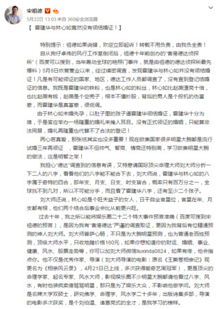 宋祖德在微博爆料,据身旁的工作人员调查后,直指林心如未婚怀孕、用孩子来逼霍建华领结婚证,男方无奈之下答应举办隆重婚礼来掩人耳目,表示这2人至今仍未正式领证,“婚礼再隆重也代替不了合法的登记!”但也有粉丝出面护航,台湾并没有结婚证,只要有到户政事务所登记,即可算是正式成为夫妻。 . d$ h8 U$ ?' p8 y+ x: m4 z4 h% c