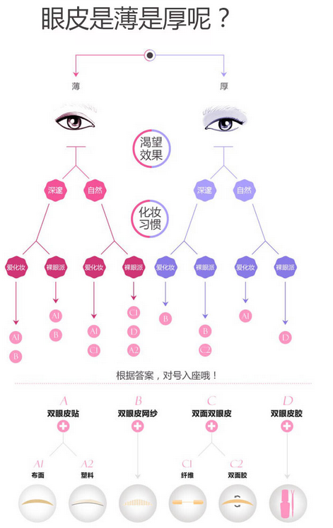 接下来,我们再聊聊双眼皮贴,由于种类太多很多人不知道选择哪种最适合自己,其实只要根据自己的眼形和化妆的风格就能选择自己适合的形状。
