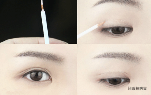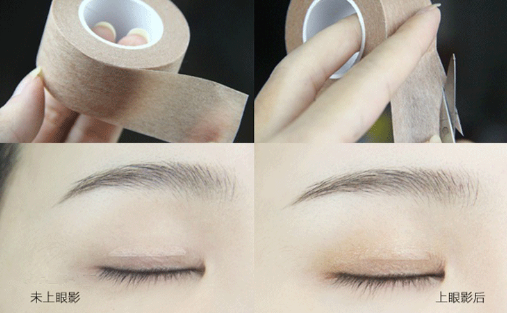 既贴双眼皮贴又画眼影,闭眼时双眼皮贴的位置就会非常明显,看起来有点反光。