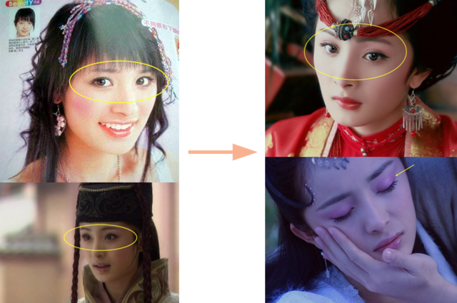 昕薇模特的时候杨幂还是内双,再到仙剑三的时候眼睛就开始有了变化,眼皮已经变宽,但是闭眼的时候还没有像现在bug这么多↑