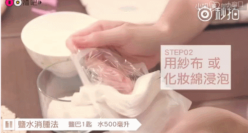 第一步:将一汤匙的盐放在水中。然后用纱布或化妆棉浸泡。