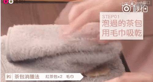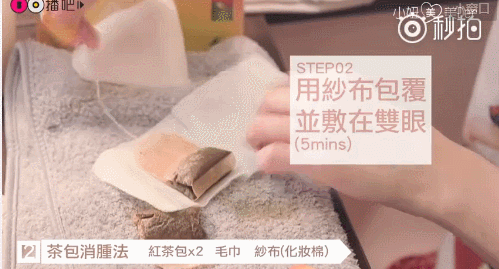 第二步:用纱布包裹茶包然后敷在眼睛上