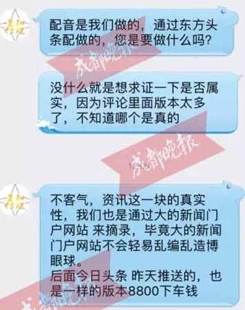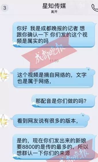 成都晚报(微信号:CDWanBao)记者通过加公司QQ号对话到了“星知传媒”工作人员,求证内容是否属实,该工作人员明确回应记者,这个视频是摘自网络的,文字也是来源网络,“配音是由我们做的,内容是通过大的新闻门户网站来摘录。”不过,该工作人员并未明确回应,文字内容到底从何而来。