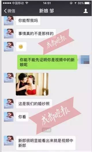 成都晚报(微信号:CDWanBao):视频对你们的生活有影响吗?家里人是否知情? 新娘小邹:我们是通过朋友才知道网上传的消息,很气愤。后面我爸妈还是知道了,我爸都被气哭了,我们在网上搜联系方式,希望可以撤除视频,但是转发的越来越多,根本没用。现在自己的朋友圈里都有转发的视频。我们只想让网上的视频可以撤销,让大家知道真相,不要再转发再评论了。 南通0 |