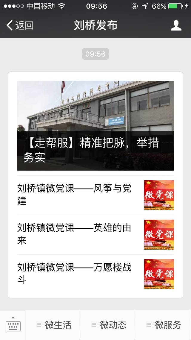 刘桥镇创新制作“微党课”,并上传至“刘桥发布”微信公众号;组织镇村宣讲员队伍,在“走帮服”过程中,推门入户送党课;积极申报“星级基层党建示范点”。为传播党的声音、弘扬刘桥人文精神、培树典型基层党组织、夯实基层组织建设起到了推动作用。