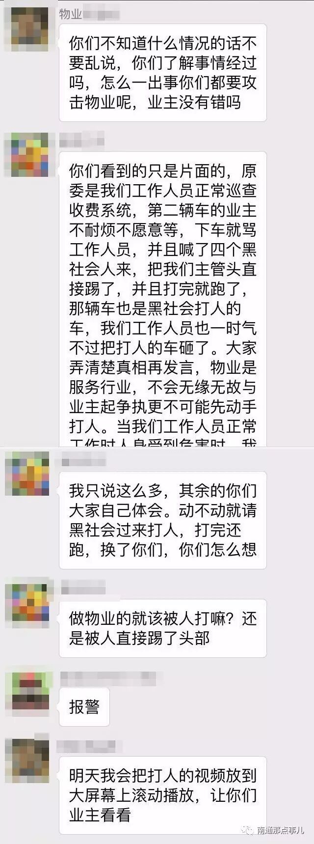 t3 _8 f2 W+ @# R稍后,女车主的丈夫带着多名男子前来,将小区物业主管打了。等物业工作人员反应过来,打人者连车也没开走,就离开了现场,遂出现了情绪失控的物业人员砸了拉在事发现场越野车的事儿。 视频一(物业视角) https://v.qq.com/iframe/player.html?vid=t13193ufe95&width=670&height=502.5&auto=0