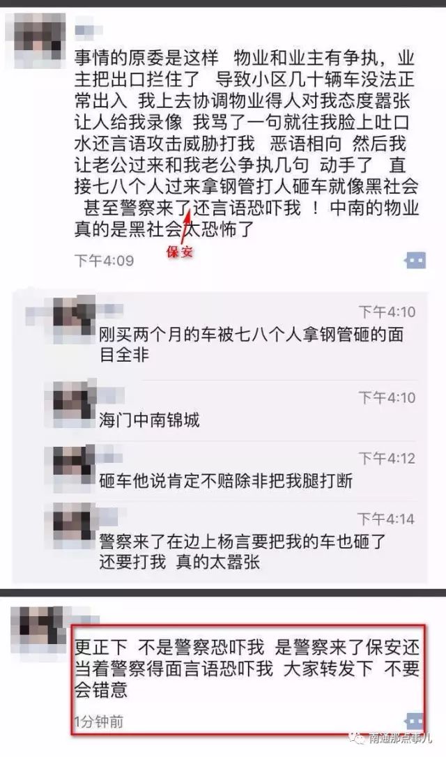. b' S" T% L5 ]4 \为此,小编也进行了了解。原来,20日下午,有多辆汽车在中南锦城小区南出口等待放行,因第一辆车主与物业工作人员沟通停车费原因,导致后续车辆一时都限于等待。排在第二辆车的女车主等得有点急了,遂与物业人员发生了口角。