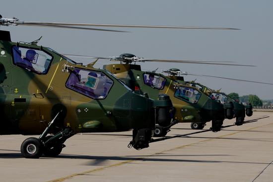近日,解放军空降兵军直-10武装直升机群出现在吉林省公主岭市空军场站。
