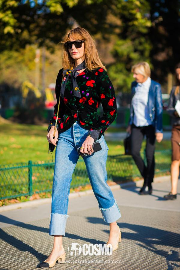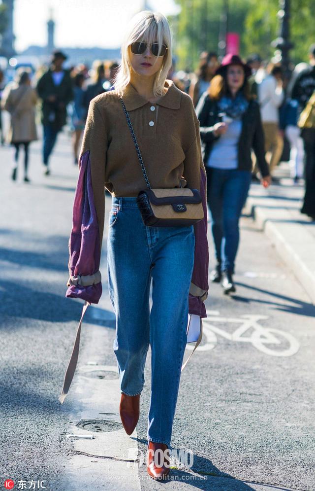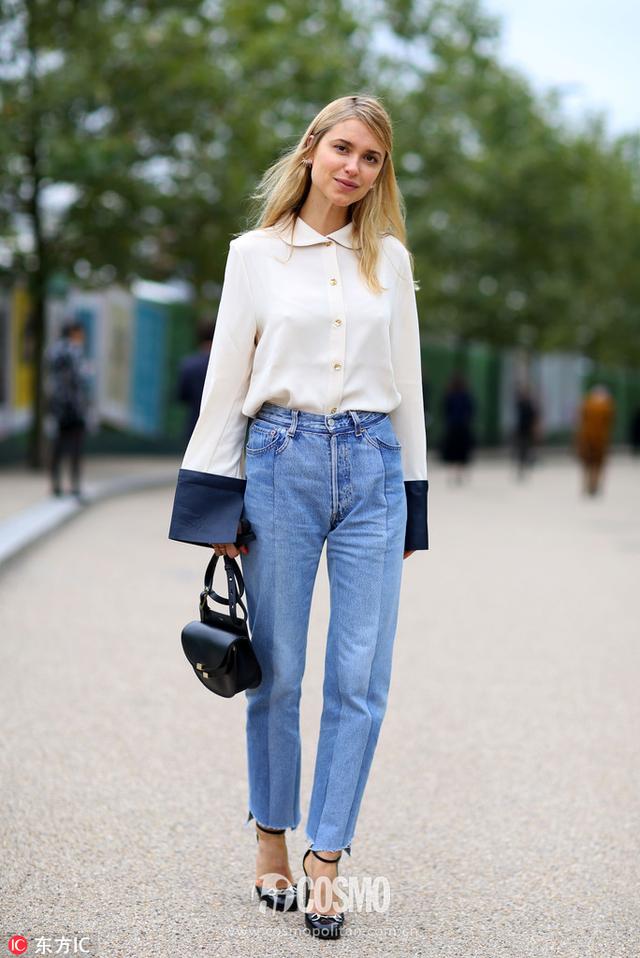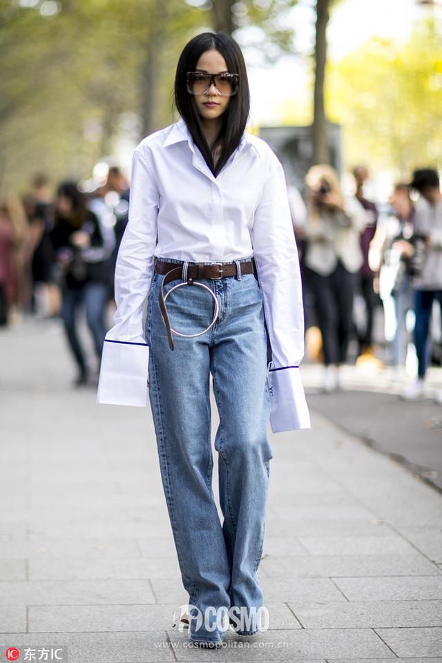 选择小网眼的,会比大网眼的袜子要精致高级一些。 5、复古牛仔裤 最后要说的就是这条宽边复古牛仔裤,可以说是风靡了好久,到现在这股风潮还未褪去。明星们都穿不好诶,不信你看。