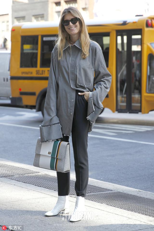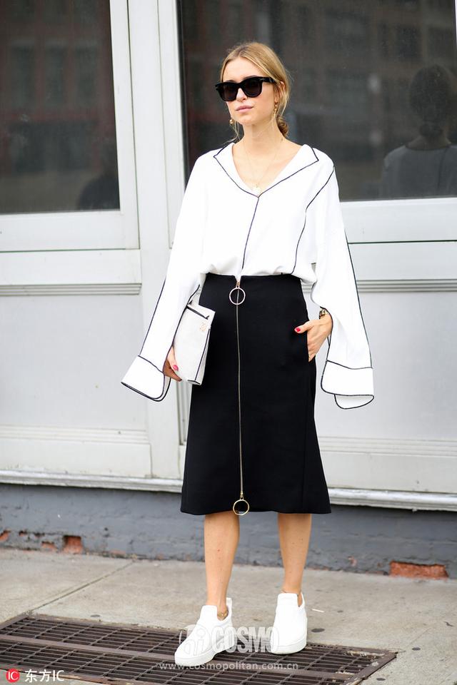 或者像Aimee song或者是时尚博主Pernille Teisbaek一样,选择开叉的长袖子,露出一点皮肤会利落很多。 4、网袜 网袜从2017年初就被时尚圈的人开始热捧,大家突然一窝蜂的都开始穿起了渔网袜,画面各有不同。