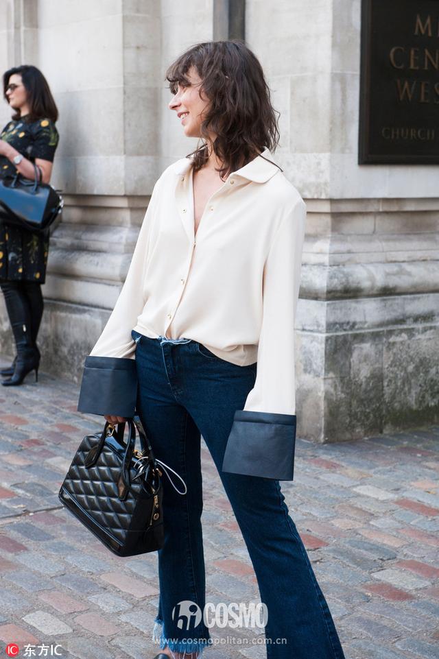 如果你非要赶长袖子的时髦,可以从袖子的材质上选择像雪纺、丝质这种垂感比较好的,不会全部堆在胳膊上。 2、袖子的长度要适中