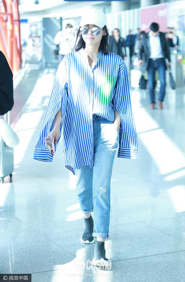 LV这只是她最近出现频率比较高的一只,但背上的效果不敢再多看一眼…… 宋茜的机场街拍中也拿过不少次的腰包画风是这样的: