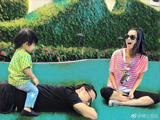 章子怡更是晒出了醒醒骑在爸爸身上的照片,一家人超幸福。有网友表示:“一家四口长得越来越像啦!”“小苹果长成大姑娘了。”