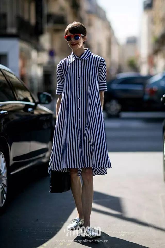 这两天的街拍场,大家都跟约好了似的纷纷穿上了条纹衬衫,从Oversized款到解构款再到修身款,一应俱全。条纹衬衫好看是没错,但是COCO今天并不想再跟大家分享“讲烂了”的条纹衬衫了,毕竟如果非要穿条纹的话,COCO的心头好明明是条纹衬衫裙啊! 点击播放 GIF/1339K万能的条纹衬衫裙 今天咱们不说衬衫,而是聚焦在条纹衬衫裙上。相比较纯色款,条纹款更多了几分休闲感,不过也能hold住各种场合。 1.上班的时候,衬衫裙这么穿 衬衫裙在日常装扮中运用得最多的莫过于上班的时候了。既有小翻领设计,又是One Piece,配上一个Tote包就能昂首阔步迈向职场咯,让日常搭配变得简单轻松。 不过在挑选适用于职场的衬衫裙的时候,需要注意的是最好选择修饰腰线、长度适中的款式。因为裙身太宽松的话容易给人不够正式的感觉,如果在腰部有绑带设计或是自己配上一条细腰带会更修身。 在长度挑选上,最好选择刚好膝盖以上的款式,太长的条纹衬衫裙出现在职场上容易给人拖沓的感觉,短款更显干练。 2.街拍的时候,衬衫裙长这样 到了街拍场上,衬衫裙瞬间就变得任性起来了,不仅搭配变得千变万化,条纹衬衫裙的款式也更有新意。 比如不适用于职场的长款条纹衬衫裙,在底下搭配一条牛仔裤,瞬间提升时髦指数不是事儿。不过记得要把自己的衬衫扣子解开打造高开衩的感觉哦! 不止长款,短款条纹衬衫裙在下面搭配阔腿裤、紧身裤也能有意想不到的时髦感。不过这种搭配很容易让身材比例缩短不少,所以强调腰线是必不可少的。 再或者选择更有新意的搭配,就是在条纹衬衫裙外再套上一条A字半裙,顿时就有了解构主义的味道,还突出了腰线,拉长了身材比例。 3.度假的时候,衬衫裙还能这样 条纹衬衫裙同样有浪漫的一面,就是在度假的时候。如果想在夏季度假时,演绎一条浪漫的条纹衬衫裙,那么首先就要从面料下手。传统的衬衫裙总会给人太过正统的感觉,但是如果选择比较飘逸的面料,那么问题就迎刃而解了! 南通0 |