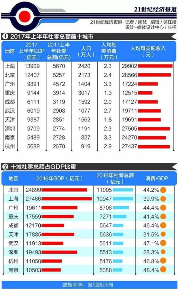 但是,光会买买买可不行!有钱才可以任性买!目前至少已有9个省区市发布了2017年企业工资指导线,为企业给职工调整工资提供了指导性建议。 上海成上半年最能花钱的城市 据央广网,上半年数据显示,社会消费品零售总额排名前十城市,分别是上海、北京、广州、重庆、成都、武汉、天津、深圳、南京、杭州。 与消费能力相匹配的,是十个城市的经济实力。从2016年城市GDP排名来看,十个城市均入列全国城市经济前11强。唯GDP居于第7位的苏州,没有进入消费前十强。 图片来源:21世纪经济报道 上海首次拿下社会消费品零售总额增速排行榜第一的位置,主要得益于其2016年8.0%和今年上半年8.1%的增速;而2016年北京增速为6.5%,2017年上半年增速再放缓,为5.6%,最终总量落后于上海。 图片来源:北京市统计局 据21世纪经济报道,具体从总量看,上海、北京和广州稳居社会消费品零售总额第一梯队;第二梯队是重庆和成都,在3000亿-4000亿元之间;第三梯队是武汉、天津、深圳、南京和杭州,在2600亿-3000亿元之间。 每经小编(微信号:nbdnews)了解到,2017年上半年,中国社会消费品零售总额172369亿元,同比增长10.4%。其中,限额以上单位消费品零售额76953亿元,增长8.7%。按经营单位所在地分,1-6月份,城镇消费品零售额147786亿元,同比增长10.1%;乡村消费品零售额24583亿元,增长12.3%。 以下是近年来中国社会消费品零售总额同比增长情况: 图片来源:华尔街见闻 深圳为什么挣得多买得少? 数据显示,上半年,深圳人均可支配收入达到27505元,仅次于北京和上海,但在社会消费品零售总额上却远逊于北上广,更是低于武汉。 对比相邻的广州,上半年广州和深圳GDP分别达到9891亿元和9709亿元,差距不大,在增速上,深圳达到8.8%,在一线城市中最高。在人均可支配收入上,深圳达27505元,高出人口数量相当的广州近万元。 为何深圳消费能力落后广州?据21世纪经济报道分析,有以下两大原因: 其一,深圳靠近香港,出入香港购物方便,很多深圳人经常往返香港购物,尤其是一些大额奢侈品。2013年曾有报告显示,2012年9月-2013年9月,12个月的时间内,深圳市民赴港购物的人均消费总额均值为11566.5元/人。 其二,深圳虽然社会零售消费较低,但从2012年以来,深圳现代服务业保持10%以上的增速,消费结构也处于转型升级之中,即从过去的买商品向买服务转变。 在每经小编(微信号:nbdnews)看来,深圳的房价或许也是限制当地人收入支配于消费的一个重要原因(攒首付、还房贷)。 当然,让不少在深圳生活的人感到宽慰的消息是,深圳房价已连续10个月下降。据央视财经5日消息: 房价方面,对自去年10月至今,深圳房价已连续10个月下降,由最高的61600元/平方米跌到54446元/平方米。每平方米累计下跌7154元。 业内人士认为,因为获利的空间越来越小,无论在一手房还是二手房领域,投资客都正在逐步退出市场。 9省份发布2017年企业工资指导线 说完买买买,再来说说收入的事。 据中新网4日消息,目前至少已有9个省区市(北京、天津、山东、山西、河南、陕西、安徽、吉林、内蒙古)发布了2017年企业工资指导线。 图片来源:中新网/李金磊 比如山东提出,企业应在政府发布企业工资指导线30日内,与职工开展工资集体协商,制定工资调整实施方案,并向人力资源社会保障部门备案。 那么,公布工资指导线,是强制要求企业给员工涨工资吗?事实上并非如此,工资指导线是政府向企业发布的年度工资增长水平的建议,属于指导性信息,并不具备强制约束力,但工资指导线可为企业与职工开展工资集体协商以及企业自身合理确定工资增长水平提供参考依据。 与往年相比,上述9个省区市今年的企业工资增长指导线多为持平或下调。如,山东今年基准线为7.5%,上线为12%,下线为3%。其中,基准线、上线比2016年分别下调0.5个、1个百分点,下线与上年持平。 对此,一些人可能会有疑问:企业工资指导线下降,是不是意味着工资会进入负增长? 山东省人社厅相关负责人解释称,下调指导线,只能说明工资涨幅较以往有所减少。也就是说,只要三条指导线——基准线、下线、上线都不是负数,就意味着政府指导的职工工资增幅都是呈上涨趋势的。 南通0 |