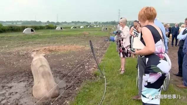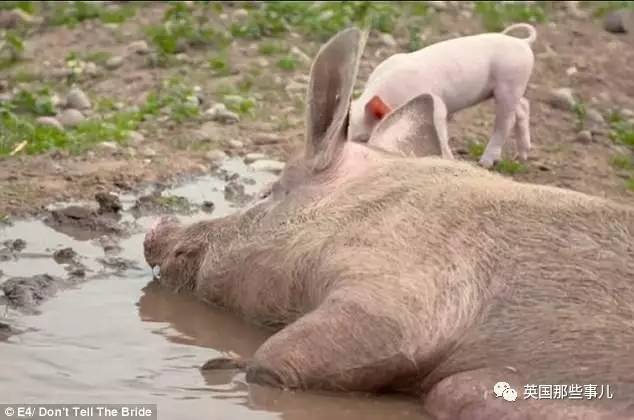 呃…虽然不怀疑新郎的诚意…不过,为毛啊???!!!你见过谁的婚礼是以猪为主题的?!!! 面对大家的疑问,直男Billy深情款款地表示,因为新娘Steph的昵称就是小猪猪(little piggy)啊,所以他特地准备了这个以猪为主题的特色婚礼啊… 另外,Steph以前偶然提到过,觉得猪小弟好可爱…打那以后,他经常送各种猪猪玩具礼物给她,Steph也都收下了啊…这个猪猪婚礼,她应该很喜欢呀… 穿着漂亮裙子和高跟鞋,结果在泥地里一踩一个坑的女宾…