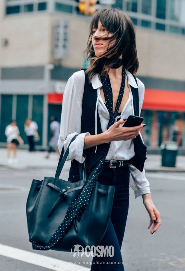 别看丝巾这件小配饰不如金属配饰高贵,搭配起来可是更显眼更实用,绝对是物超所值名单中的一员。用丝巾搭配造型,轻轻松松让你精致分+10。 搭在脖子上 丝巾搭在哪是个老生常谈的话题了,首选的当然是系在脖子上,要出门约会,除了衬衫牛仔不知道该穿什么,那就系条丝巾好了,保证精致时髦不撞衫。 它能为纯色上衣增色,让浅色上衣不那么普通。 也能一扫黑色的严肃刻板,让黑色LOOK更加精致时髦。 这不,快入秋了,转眼间就要到了满大街都是深色大衣的季节。不想被埋没在黑白灰里的话就在脖子上系条丝巾,“纵使秋风瑟瑟,春意在我颈间”。 丝巾搭配没什么难度,因为亮色丝巾暗色丝巾都百搭,买一条丝巾可以搭得上衣柜里一大半的衣服,平时不系丝巾是一个造型,系了丝巾又是另一种感觉,可以说是最便宜最实用的单品之一了。 穿了低领上衣,觉得脖子上光秃秃没有安全感,也可以扯条丝巾系在脖子上。 其他系法 系在脖子上当然只是丝巾的用法之一,往上一点,丝巾还可以戴在头上做发带,一不小心就能弄出法式优雅。 或是直接当发绳系头发,发丝与丝巾交缠,随风飘起来的时候不能更美。 往下一点,丝巾还可以系在腰上当腰带。 或是系在包上,让你的包包与众不同。 或是直接系在手腕上,这件饰品时髦又轻巧。 甚至还可以穿进外套的扣眼里,总之丝巾在手,怎么搭随便你尽情发挥创意。 别看丝巾小,用处大着呢,点亮秋冬造型全靠它啦~ 南通0 |
