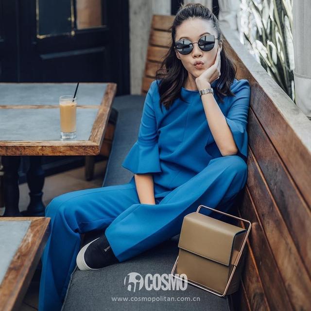 简单的盘扣搭配一只肩带,还可以手拎。可以说是非常名媛感了!