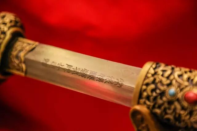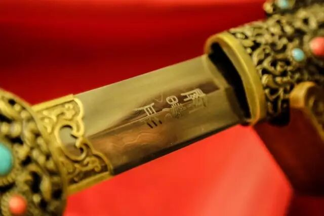 (▲宝剑的双面分别刻有“关晓彤”和“常州嬉戏谷有限公司”的文字)