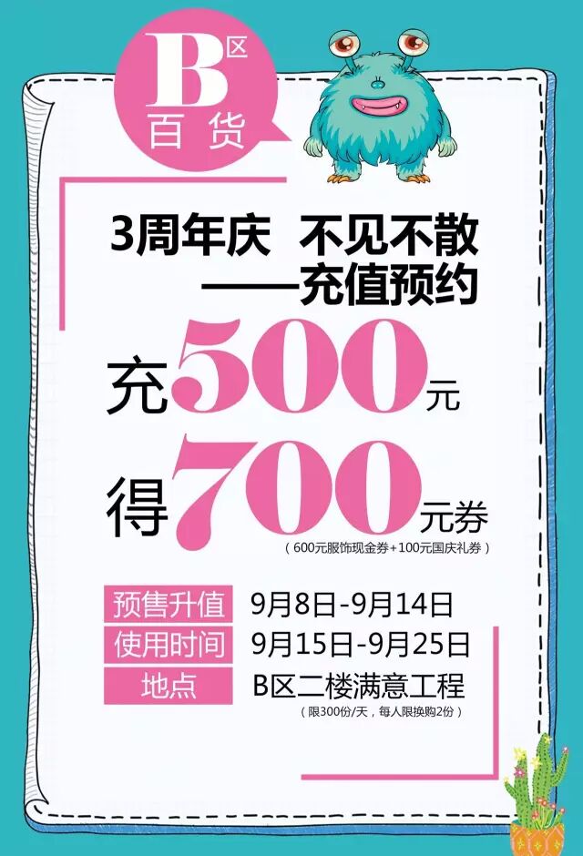 百货大出击! 3周年庆,文峰城市广场给大家送钱了! 而且是200块!就是这么任性! 是不是感动到要哭~ ▿▿▿