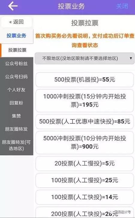 一开始,很多人还觉得很新鲜,抱着好玩的心态积极投票并帮朋友转发信息。但随着“求投票”在微信朋友圈的快速泛滥,投票活动演变成了拉票大战。人们根本无暇留意作品,而是碍于情面,让投谁投谁。 郑州白领佟先生表示,大多都是被同学被朋友,发过来一个链接,给他孩子、侄子或者多少代以外的亲戚投票,就是为了一个很虚无的奖励。还有更可恶的,就是把这些朋友拉到一个群里,每天都要投,都成人肉投票机了。 这些活动一般是“萌娃评选”、“才艺比赛”、“员工风采”等主题。在佟先生看来,朋友圈投票的泛滥,越来越演变成一种人情绑架。 佟先生说起自己的经历:“去年有一个十几年没联系的老同学,加我微信,加完之后也没怎么聊,就是每天给我发链接给他儿子投票,我说这还真是一个好爸爸,后来一想有你这么绑架同学的嘛!” 让人觉得无奈的是,这些投票并不是对选手号码点击打钩就好,而是要你先关注官方微信,有的甚至要求输入个人信息,每次都要好几道程序。做互联网自媒体营销行业的佟先生说,如今,朋友圈投票已经成为一种产业链。 佟先生表示:“你搜朋友圈投票,人工的,有些号称一个小时能投一万张,要的也不贵,一票就要一分钱,还有那种第三方软件,也能刷票。” 一款拉票APP中按投票数量明码票价。 APP页面截图在微信投票大行其道的背后,究竟谁才是“操盘手”?